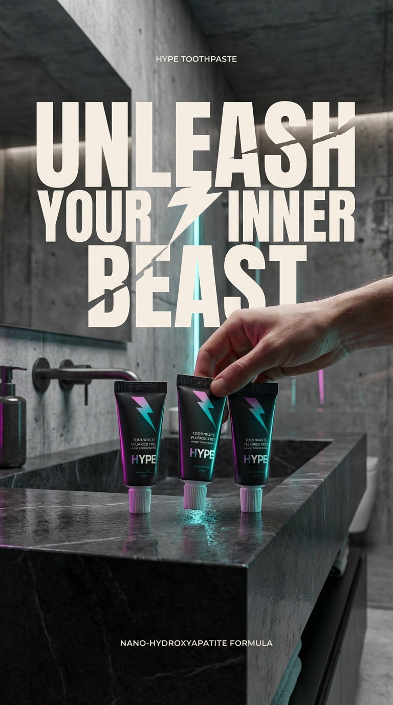 Unleash your inner beast and keep your smile as bold as your next big move. HYPE Mint Toothpaste is the all-natural, fluoride-free formula packed with nanohydroxyapatite (n-HA) – the ultimate enamel defender trusted by pros. Designed for extreme teens who live life on the edge, HYPE keeps your teeth strong, your breath cool, and your vibe untouchable – no toxic junk, just unstoppable freshness.